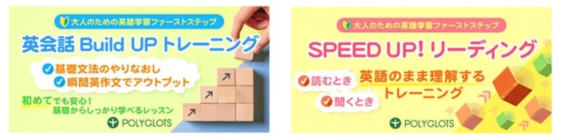 中学文法を総復習して瞬間英作文の練習ができるコースや、易しい英文のリーディングを通して日本人にとって欠かせない英語脳を鍛えるコースなど、リーディング•リスニングの基礎、初心者向けの最低限身につけておきたいビジネスフレーズが学べる講座など、これから英語の学び直しをする方に最適なプログラムもご用意しています。