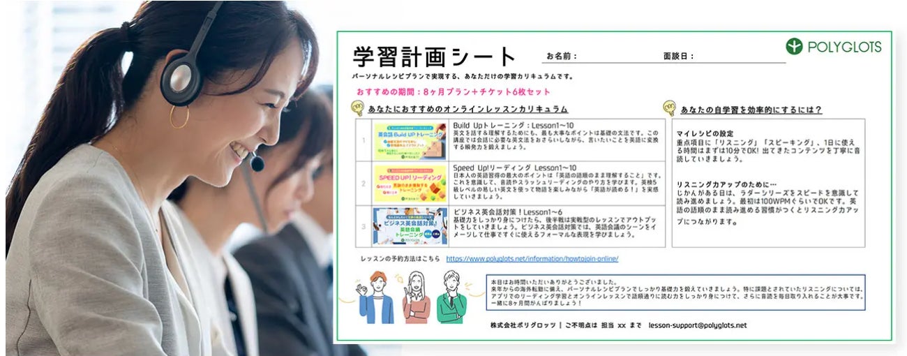 初回の無料カウンセリングで、英語学習のお悩みや目的・英語レベル・学習目的・ライフスタイル・ライフイベント・ビジネスイベントをお聞きして、あなただけの学習プランをご提案します!